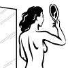 With back to the mirror,