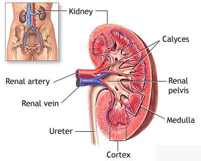 in the main blood vessels of the kidney and may be found in 1 nearby lymph node.