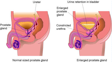 Prostate cancer is found mainly in older men. As men age, the prostate may get bigger and block the urethra or bladder. This may cause difficulty in urination or can interfere with sexual function. The condition is called benign prostatic hyperplasia (BPH), and although it is not cancer, surgery may be needed to correct it. The symptoms of benign prostatic hyperplasia or of other problems in the prostate may be similar to symptoms for prostate cancer.