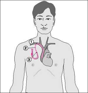 The tube is a long, thin hollow tube known as a catheter and the port is a disc about 2.5 to 4 cm in diameter. The catheter is usually inserted (tunnelled) under the skin of your chest. The tip of the catheter lies in a large vein just above your heart and the other end connects with the port which sits under the skin on your upper chest. The port will show as a small bump underneath your skin which can be felt, but nothing is visible on the outside of your body.